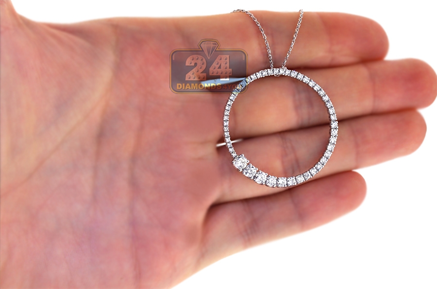 14K White Gold 1.88 ct Diamond Graduated Eternity Circle Pendant