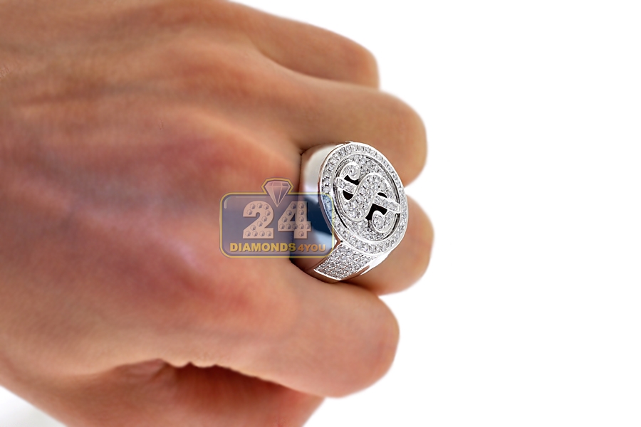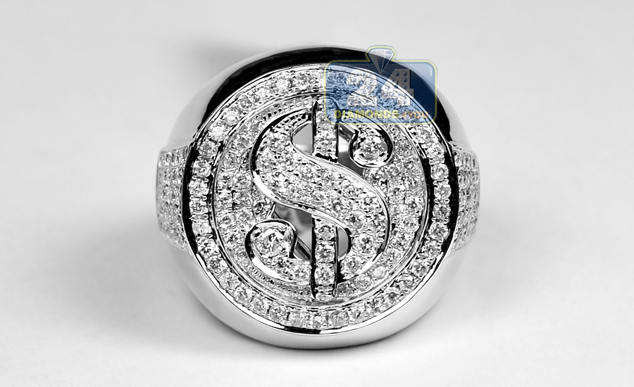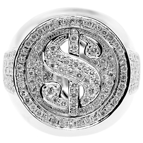 14K White Gold 1.88 ct Diamond Dollar Sign Mens Ring