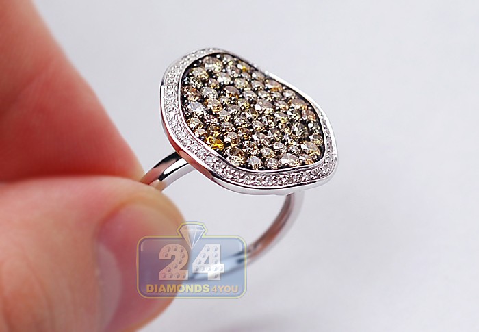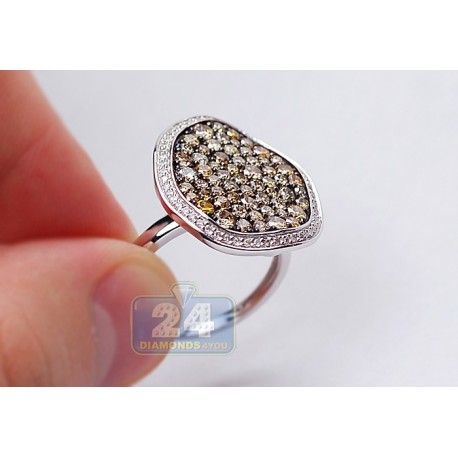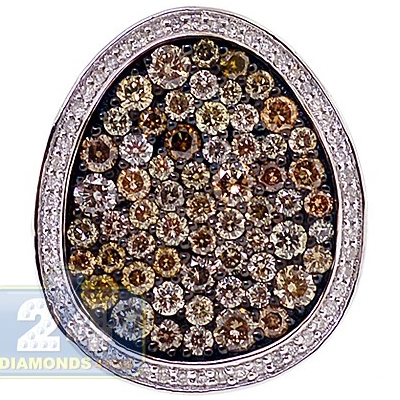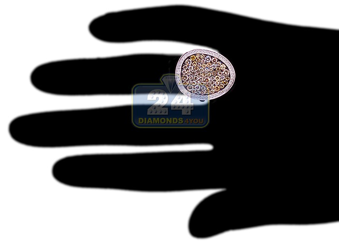 She will definitely like this alluring multi-colored ring! It features a simple, but elegant design expertly handmade of shiny polished 14k white gold, and has the unique oval shaped head encrusted with natural fancy yellow, brown and white diamonds weighting 1.98 carat. These are round cut brilliants perfectly contrasting with each other. A truly spectacular look for your princess!