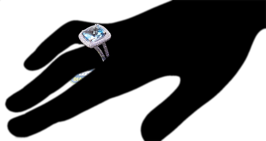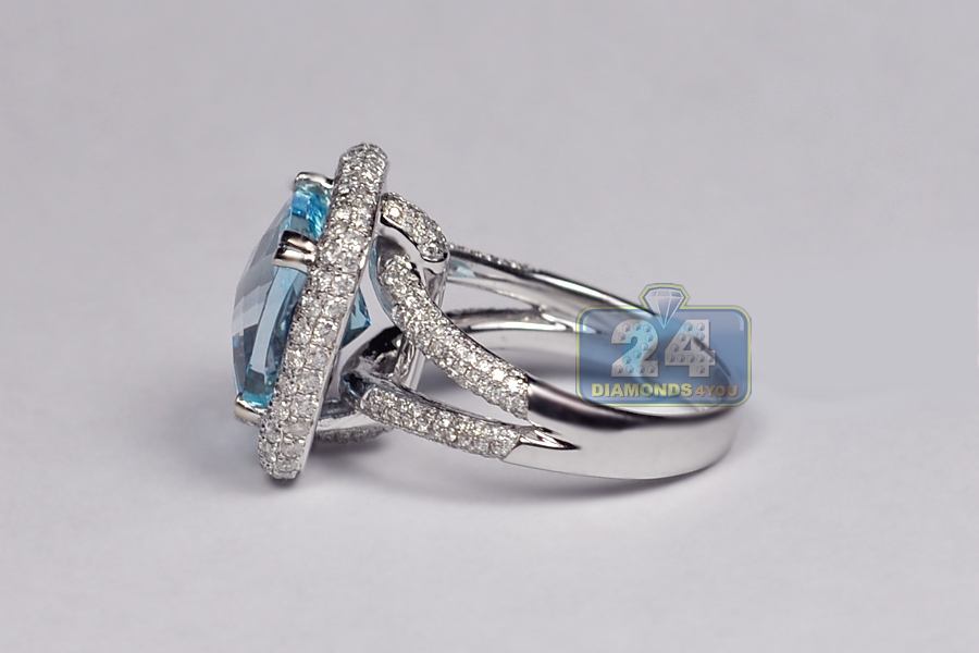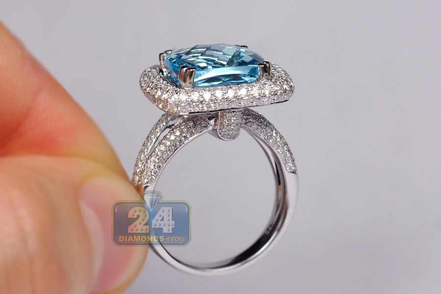14K White Gold 10.60 ct Diamond Blue Topaz Womens Ring