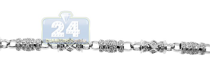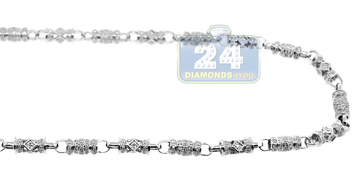 14K White Gold 10.90 ct Diamond Bar Link Mens Chain 30 Inches