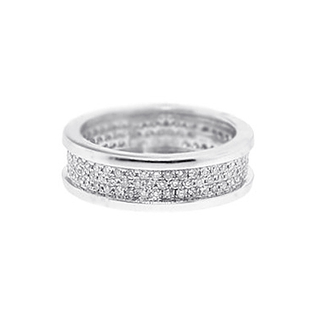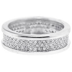 Our timeless eternity band is the perfect fit for a classic style lady! The ring is expertly designed in lustrous 14k white gold with perfectly polished finish, and skillfully encrusted with 3 rows of natural round cut diamonds weighting 1.00 carat. Each brilliant features SI1-SI2 clarity with G-H color which makes it eye clean and sparkling. What a truly beautiful simplicity and a neverending shimmer!