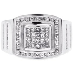 14K White Gold 1.01 ct Princess Diamond Mens Ring