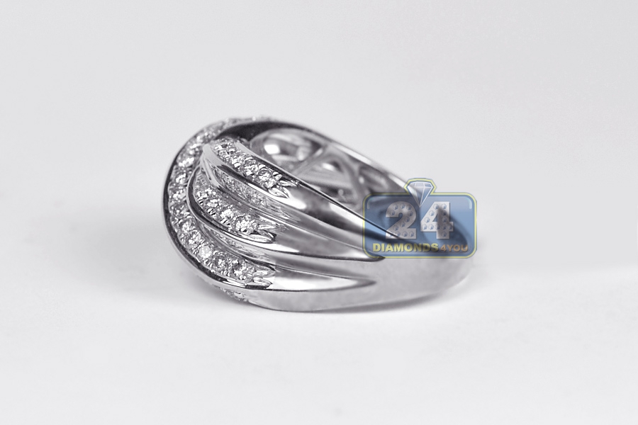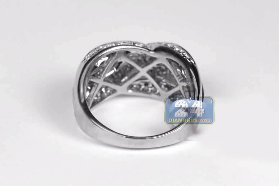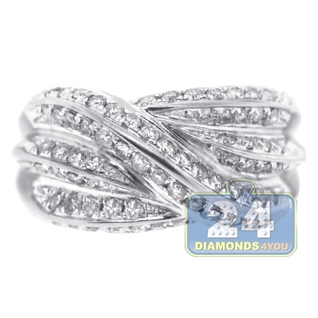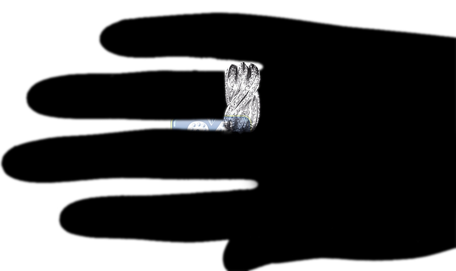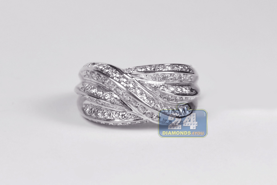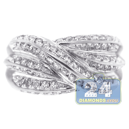 14K White Gold 1.01 ct Diamond Womens Wave Band Ring