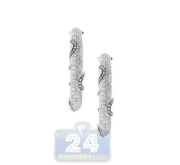 14K White Gold 10.43 ct Iced Out Diamond Womens Hoop Earrings