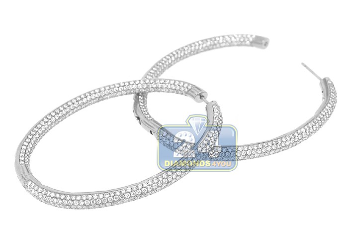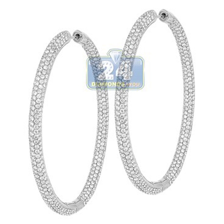 14K White Gold 10.66 ct Diamond Womens Round Hoop Earrings