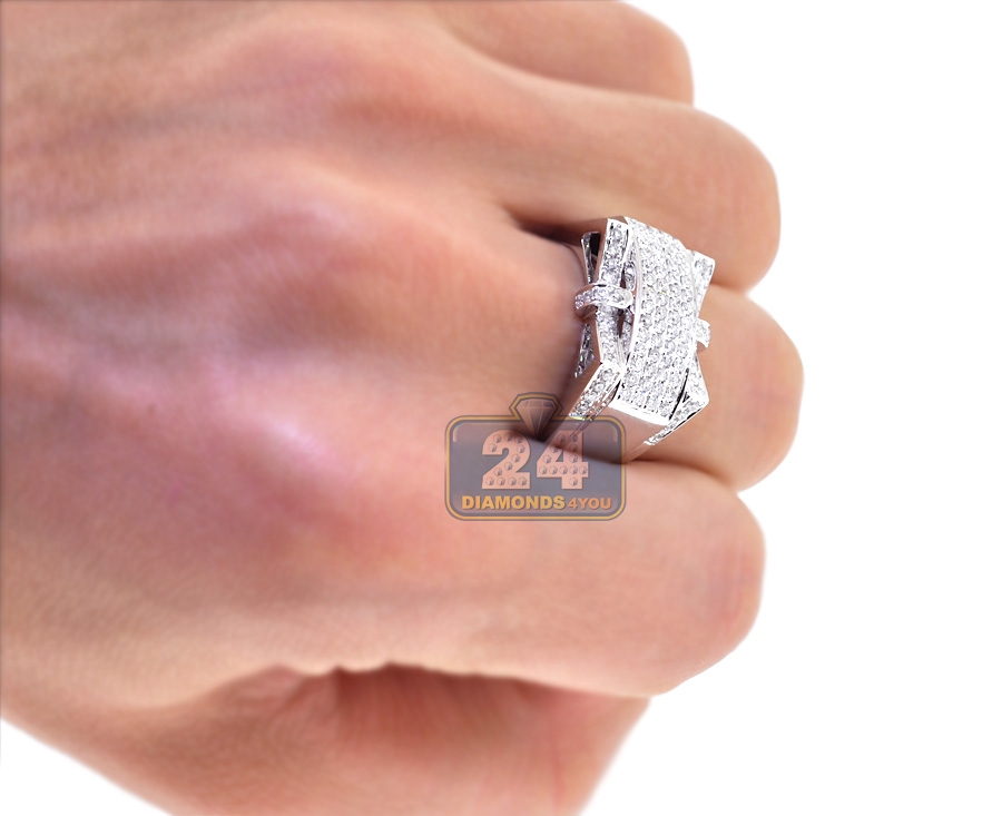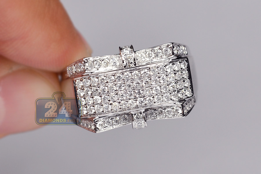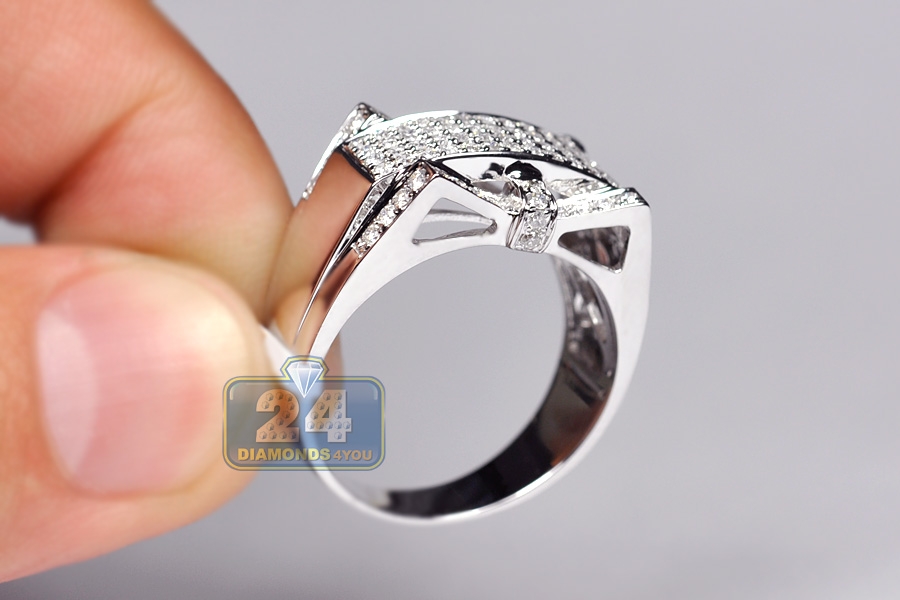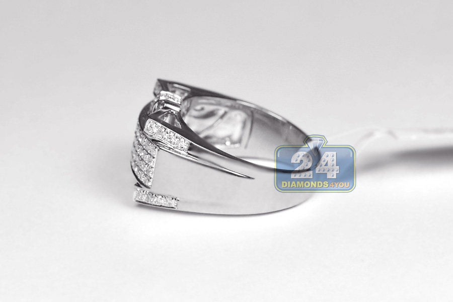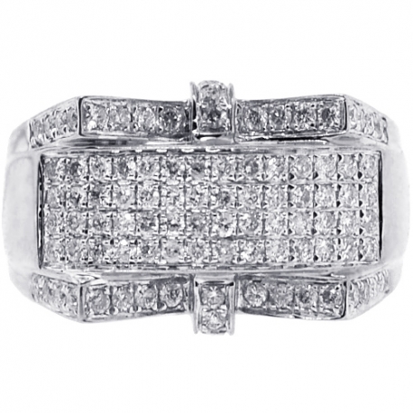 14K White Gold 1.07 ct Diamond Mens Signet Ring