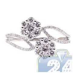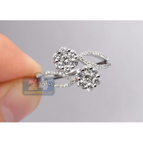 14K White Gold 1.07 ct Diamond Cluster Double Flower Ring