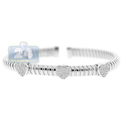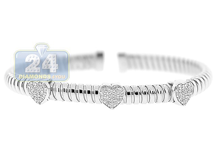 14K White Gold 1.10 ct Diamond Heart Womens Cuff Bracelet