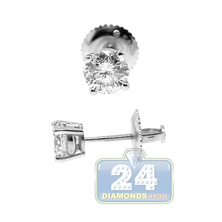 14K White Gold 1.11 ct Round Diamond Screw Back Stud Earrings