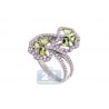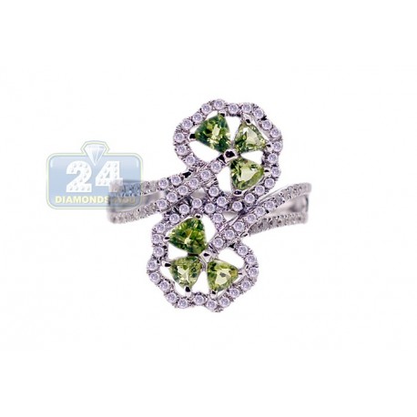 14K White Gold 1.18 ct Diamond Peridot Womens Bypass Ring