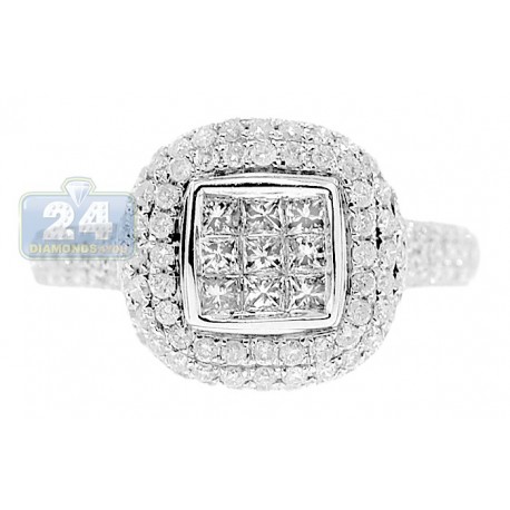 14K White Gold 1.18 ct Mixed Pave Diamond Womens Ring