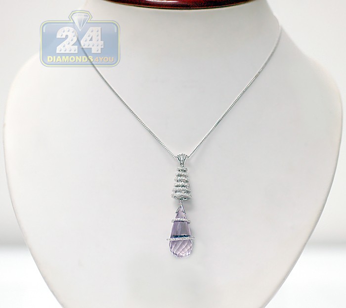 14K White Gold 12.26 ct Amethyst Diamond Womens Pendant