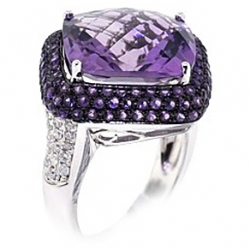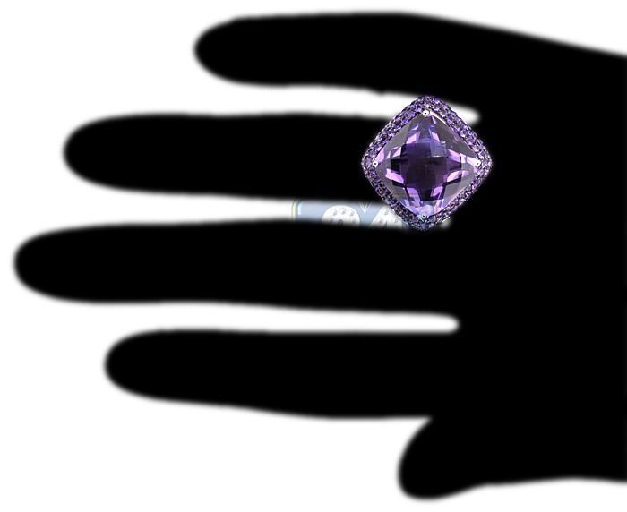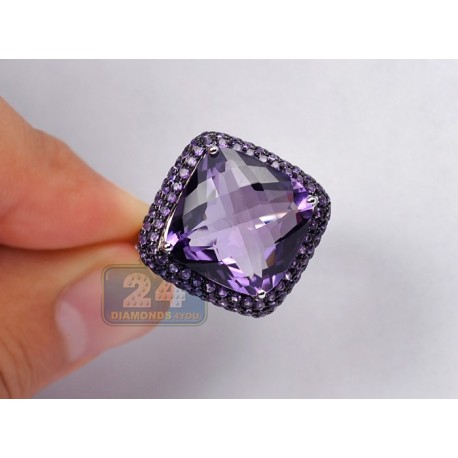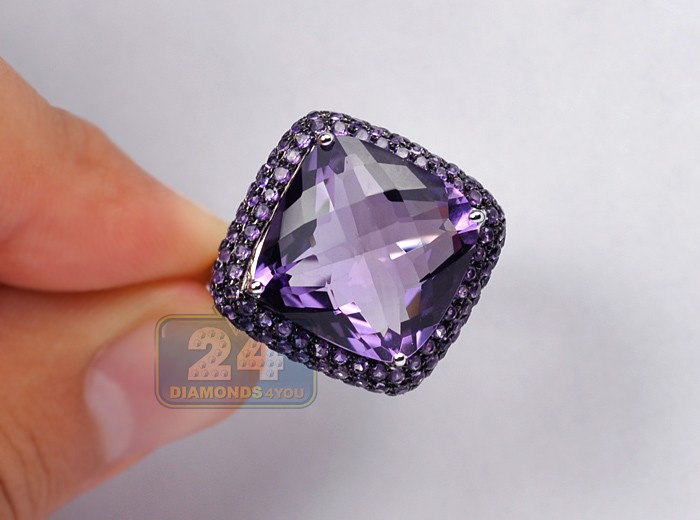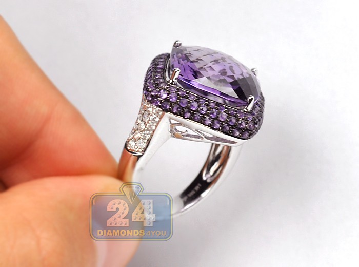 14K White Gold 12.75 ct Purple Amethyst Diamond Womens Ring
