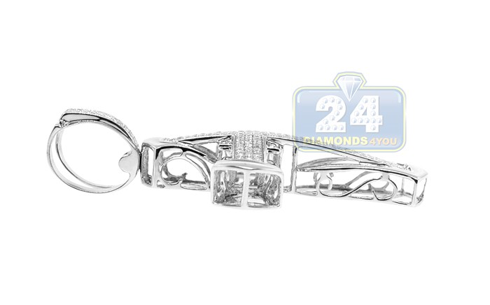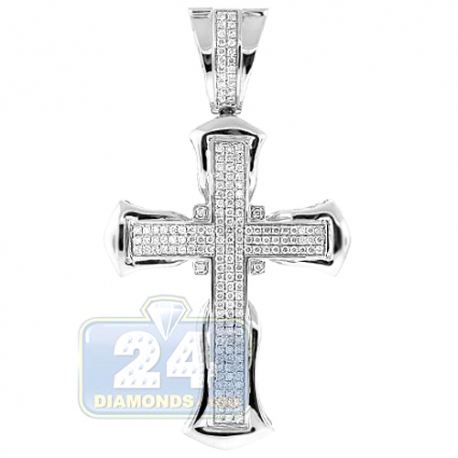 14K White Gold 1.22 ct Diamond Pave Cross Mens Pendant
