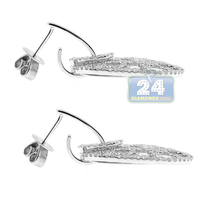 14K White Gold 1.22 ct Diamond Womens Openwork Oval Earrings