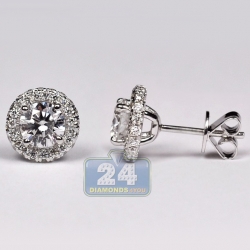 14K White Gold 1.26 ct Diamond Womens Halo Stud Earrings
