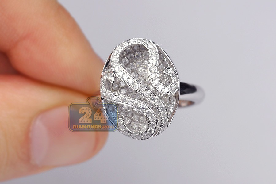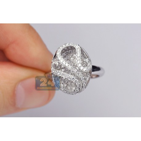 14K White Gold 1.28 ct Diamond Womens Oval Swirl Ring
