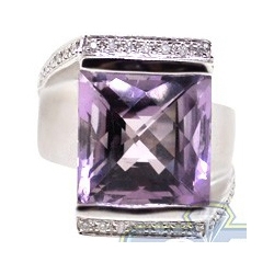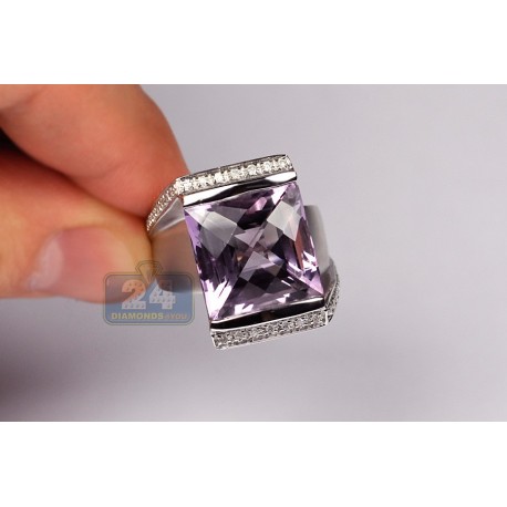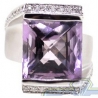 14K White Gold Tension 12.80 ct Amethyst Diamond Womens Ring