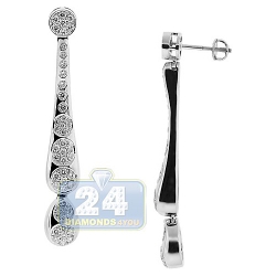 Look at these stunning diamond drop earrings! They feature 1.29 carat of icy white round brilliant-cut real diamonds (SI1-SI2 clarity, G-H color). Our women's diamond earrings are professionally made of cool 14 karat white gold, and highly polished for sparkling look. They have hanging length of 47 mm and width of 6 mm. Perfect look for any fancy event!