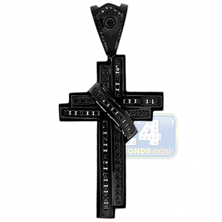 Black 14K Gold 1.32 ct Diamond Double Cross Mens Pendant