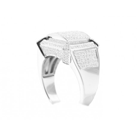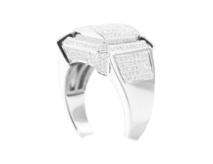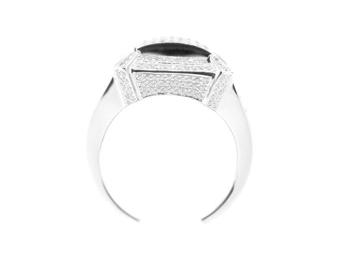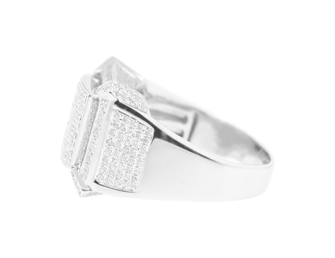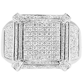 What a handsome and modern ring for men with style! The signet is professionally handcrafted in cool 14k white gold with high polished finish, and skillfully accented with a lot of rows of glittering round cut diamonds totaling 1.38 carat. Show off your rich attitude with this impressive diamond ring!