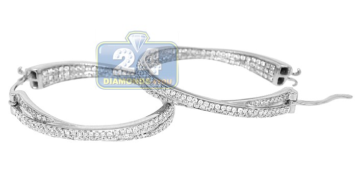 14K White Gold 1.42 ct Diamond Womens X Shape Hoop Earrings