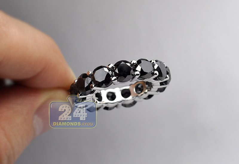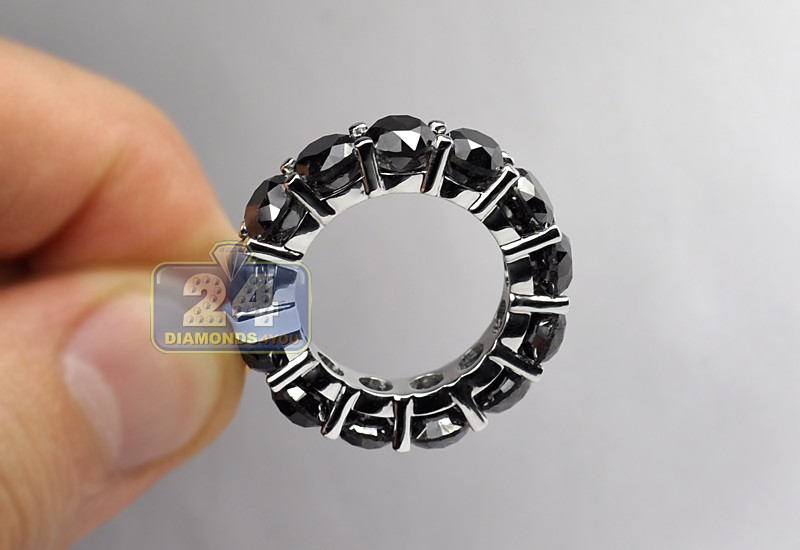 14K White Gold 14.34 ct Black Diamond Round Eternity Ring