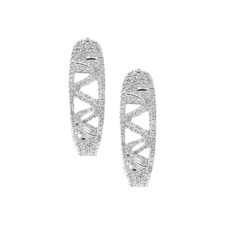 14K White Gold 1.48 ct Diamond Openwork Small Hoop Earrings