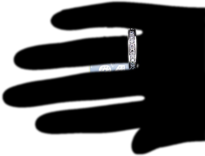 Our eternity ring is a timeless jewelry piece! It features a classic and elegant design to last forever! The band is expertly handmade of cool 14k white gold, perfectly polished with high glossy finish, and has one row of round cut diamonds totaling 1.50 carat. The brilliants are SI1-SI2 clarity, G-H color that makes them absolutely sparkling and eye clean. All stones are securely handset with bezel and prong techniques. Enjoy such a stunning symbol of your love!