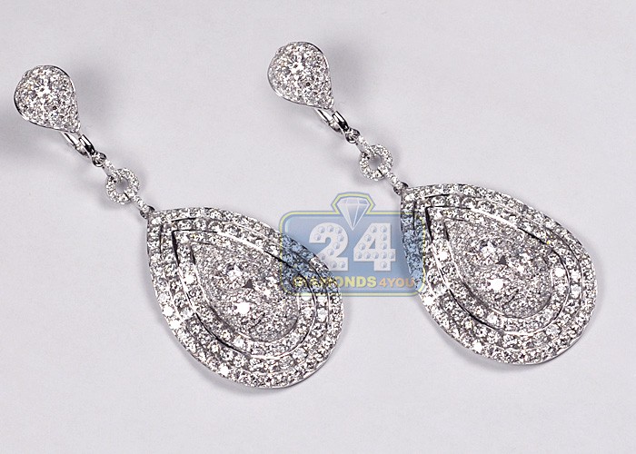 14K White Gold 15.02 ct Diamond Womens Dangle Earrings