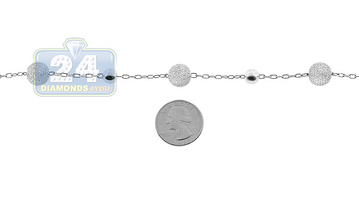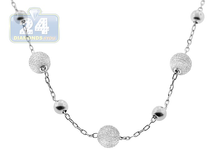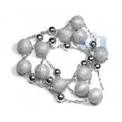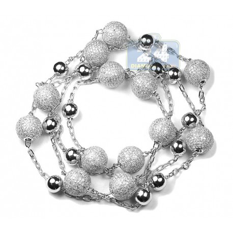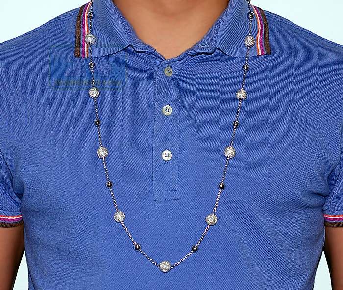 This diamond bead chain projects a wonderful image of style and luxury! It's skillfully crafted in cool 14 karat white gold with precisely polished shiny finish. There are 26 beaded links, and 13 of them are paved with 15.22 carats of lustrous white round brilliant-cut real diamonds. Our men's diamond necklace measures 35 inches in total length, 13 mm of larger beads and approximately 62 grams in weight. A special occasion calls for a spectacular piece of jewelry like the diamond ball necklace!