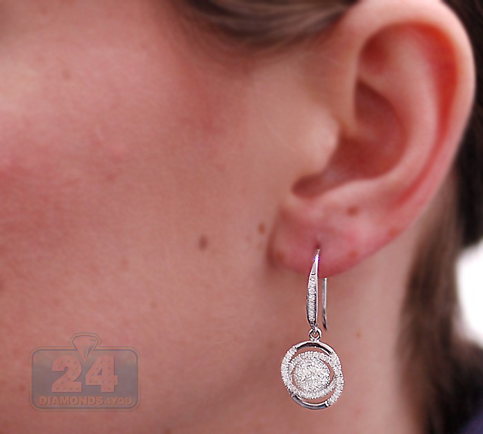 The dazzling fire of diamonds and unique dangling design create these breathtaking earrings. Dangling from a glittering diamond hook, the eye-catching round-shaped setting features double circle design set with icy white round cut diamonds. The center piece of the earring is adorned with large round cut stone surrounded by a row of smaller diamonds. All twinkling stones total to 1.53 ct. This magnificent jewelry piece is crafted in 14k white gold and will make as a perfect addition to your outfit for a day on the town or an evening out.