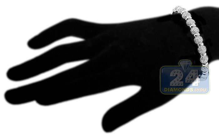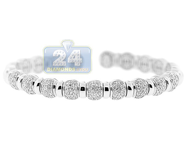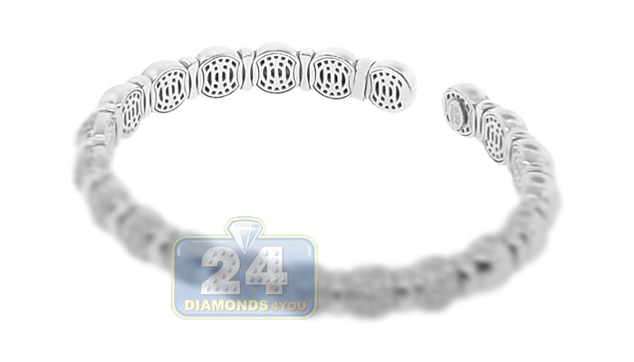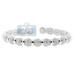14K White Gold 1.57 ct Diamond Bead Womens Cuff Bracelet