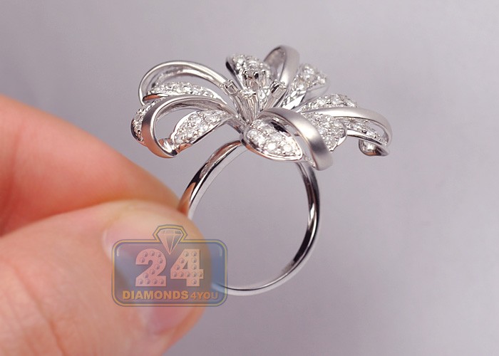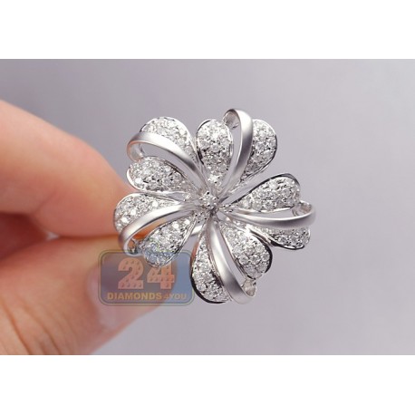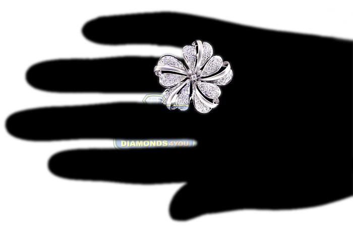 14K White Gold 1.58 ct Diamond Womens Large Flower Ring