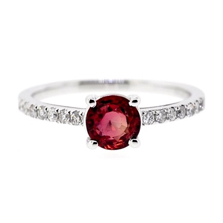 A real beauty and hidden treasure, our gemstone diamond ring is a classically designed piece of jewelry. It is professionally crafted in lustrous 14k white gold with perfectly polished finish, and skillfully encrusted with genuine orange sapphire in the center (1.36 ct) and icy white diamonds on the sides (0.24 ct). A lovely combination of colors and high quality materials! Feel simplicity at its best wearing this gemstone ring!
