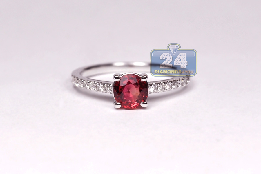 14K White Gold 1.60 ct Orange Sapphire Diamond Womens Ring