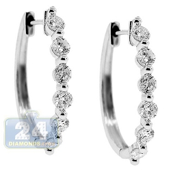 14K White Gold 1.61 ct Diamond Womens Oval Hoop Earrings