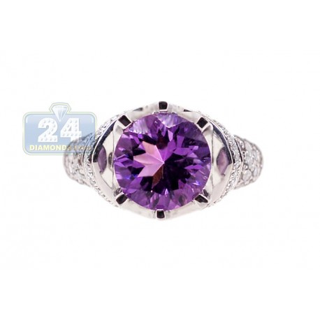 14K White Gold 1.62 ct Amethyst Diamond Womens Cocktail Ring