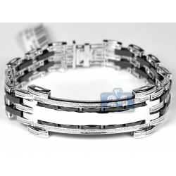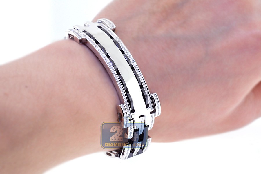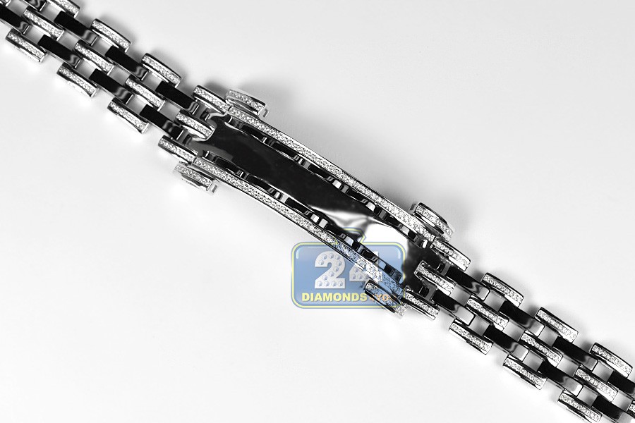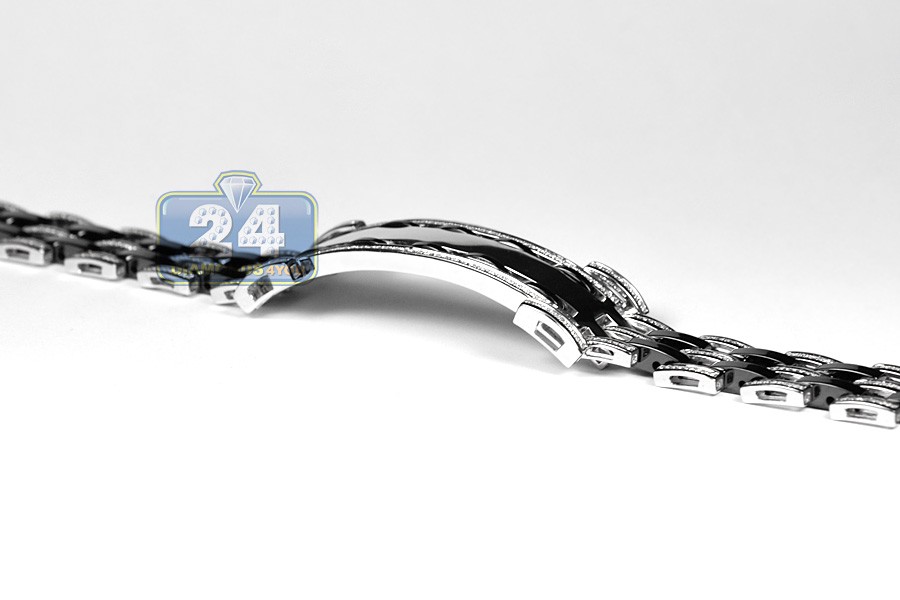 14K White Gold Ceramic 1.64 ct Diamond Mens ID Name Bracelet