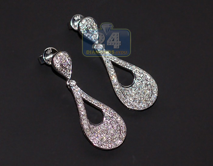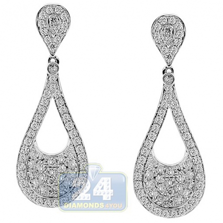 14K White Gold 1.64 ct Diamond Womens Drop Earrings