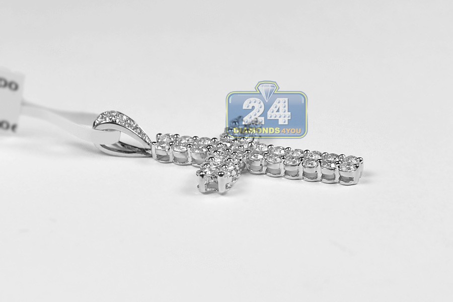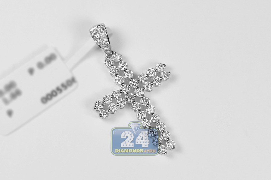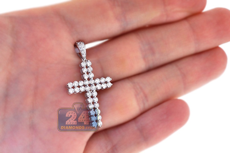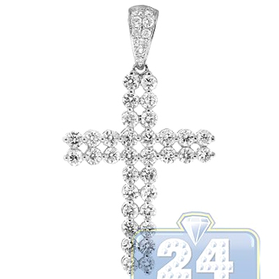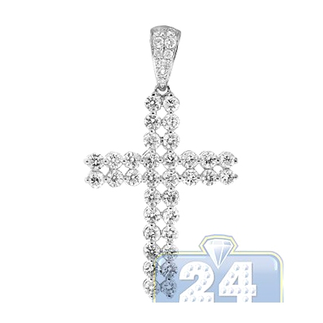 14K White Gold 1.66 ct Two Row Diamond Cross Mens Pendant