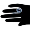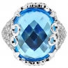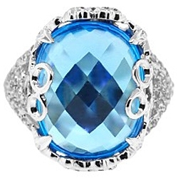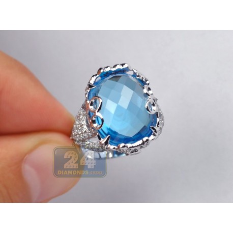 Our gorgeous gemstone ring features the unique vintage inspired design with a delicate setting masterly handmade of lustrous 14k white gold with high polished finish. The ring is expertly handset with 1.20 carat of genuine white round cut diamonds and has a natural 15.80 carat oval cut blue checkered topaz in the center. This fabulous and chic cocktail ring makes a sensational statement!