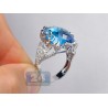 14K White Gold 17.20 ct Blue Topaz Diamond Vintage Cocktail Ring