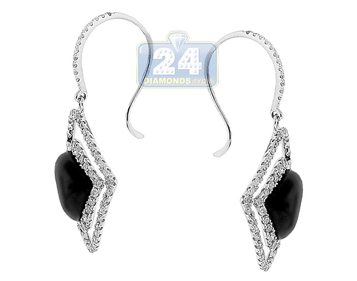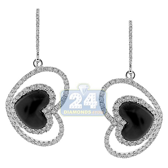 Wearing our women's heart earrings, you will infuse your look with a blend of modern elegance and classic romance. Delicately crafted in cool 14 karat white gold, these stunning earrings showcase a lovely heart theme adorned with icy white diamonds and black ceramic center. Total stone weight is 1.71 carat, VS1-VS2 clarity and F-G color. The pair measures 38 mm in height and 18 mm in width. Treat yourself or someone special!