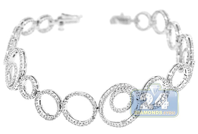 14K White Gold 1.80 ct Diamond Open Circle Womens Bracelet