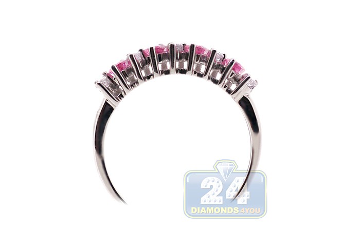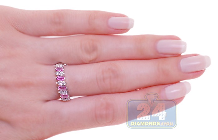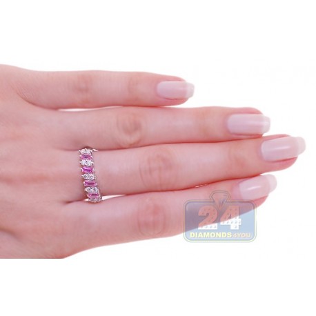 14K White Gold 1.80 ct Mixed Pink Sapphire Diamond Band Ring