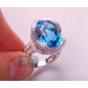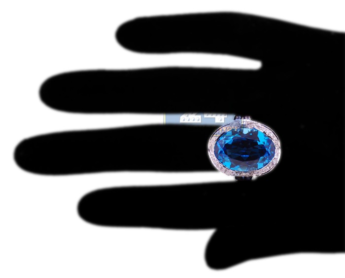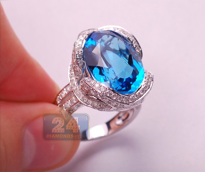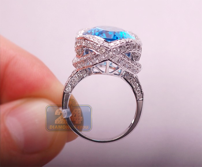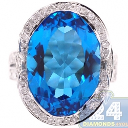14K White Gold 18.04 ct Oval Blue Topaz Diamond Cocktail Ring