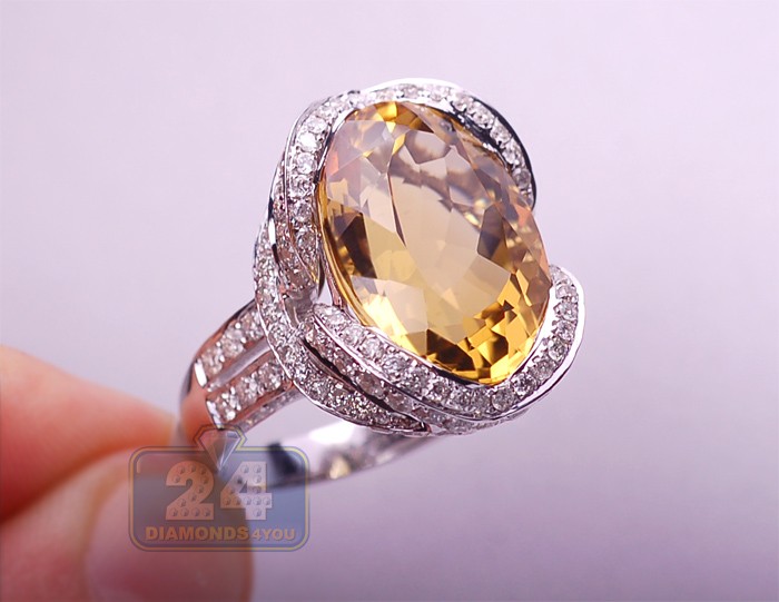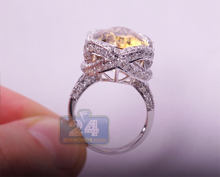 14K White Gold 18.04 ct Citrine Diamond Womens Cocktail Ring