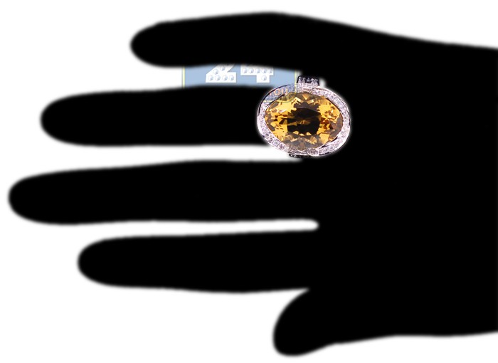 Our fancy cocktail ring will certainly get you much attention! A large natural citrine gemstone is centered with perfectly handset genuine white diamonds around. The ring is expertly designed in cool 14k white gold with perfectly polished finish and features 15.30 carat total gemstone weight with 2.74 carat diamonds. Add a contemporary splash to your jewelry collection with this gorgeous jewelry piece!